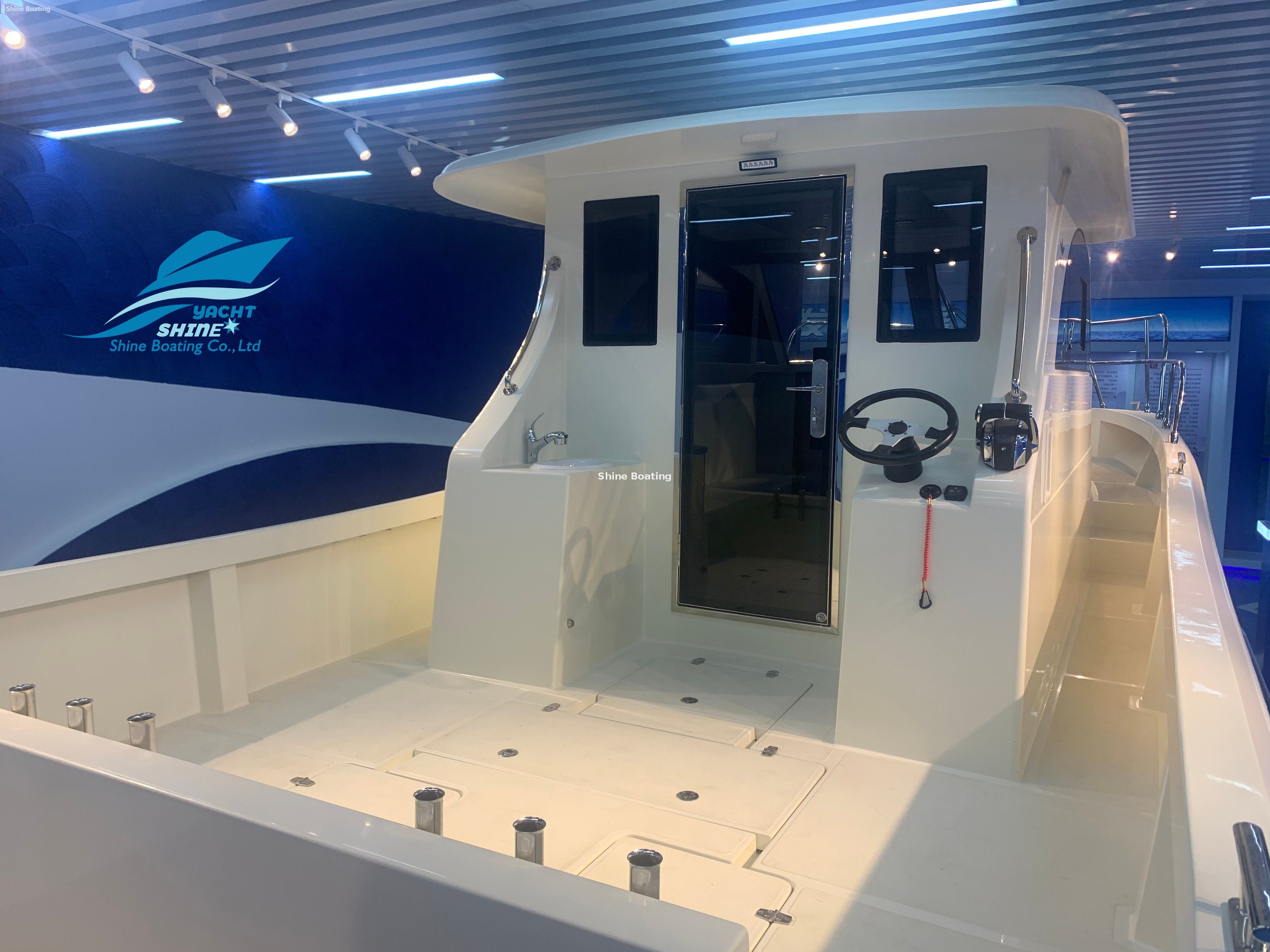 Shine Boating Co., Ltd. Situé dans la province du Shandong, une entreprise dynamique est spécialisée dans la conception, la R&D, la production, les ventes et le service. Nous visons à être un fournisseur de solutions complet pour une gamme diversifiée de motomarines, y compris différents bateaux à grande vitesse, des bateaux de pêche (de 17 à 46 pieds), des yachts de luxe (de 33 à 150 pieds), des navires de tourisme (sièges de 26 à 500 personnes), des bateaux amphibies. Nous proposons également des options spécialisées comme les bateaux à réaction, disponibles dans divers looks automobiles de modèles de 5 places à 11 places. Répondant aux besoins individuels, nous acceptons facilement les commandes de coutume et d'OEM basées sur des exigences spécifiques.